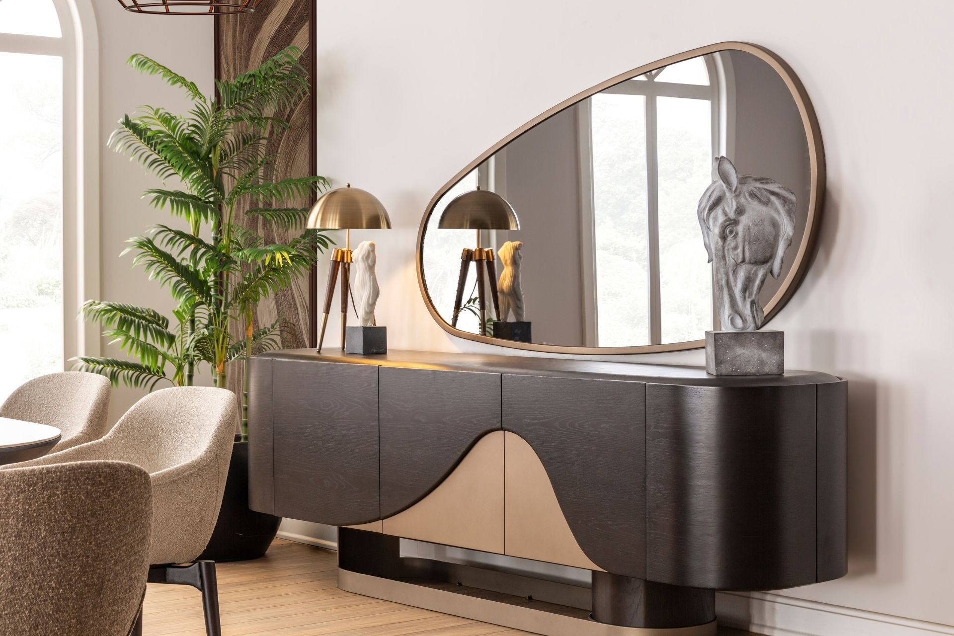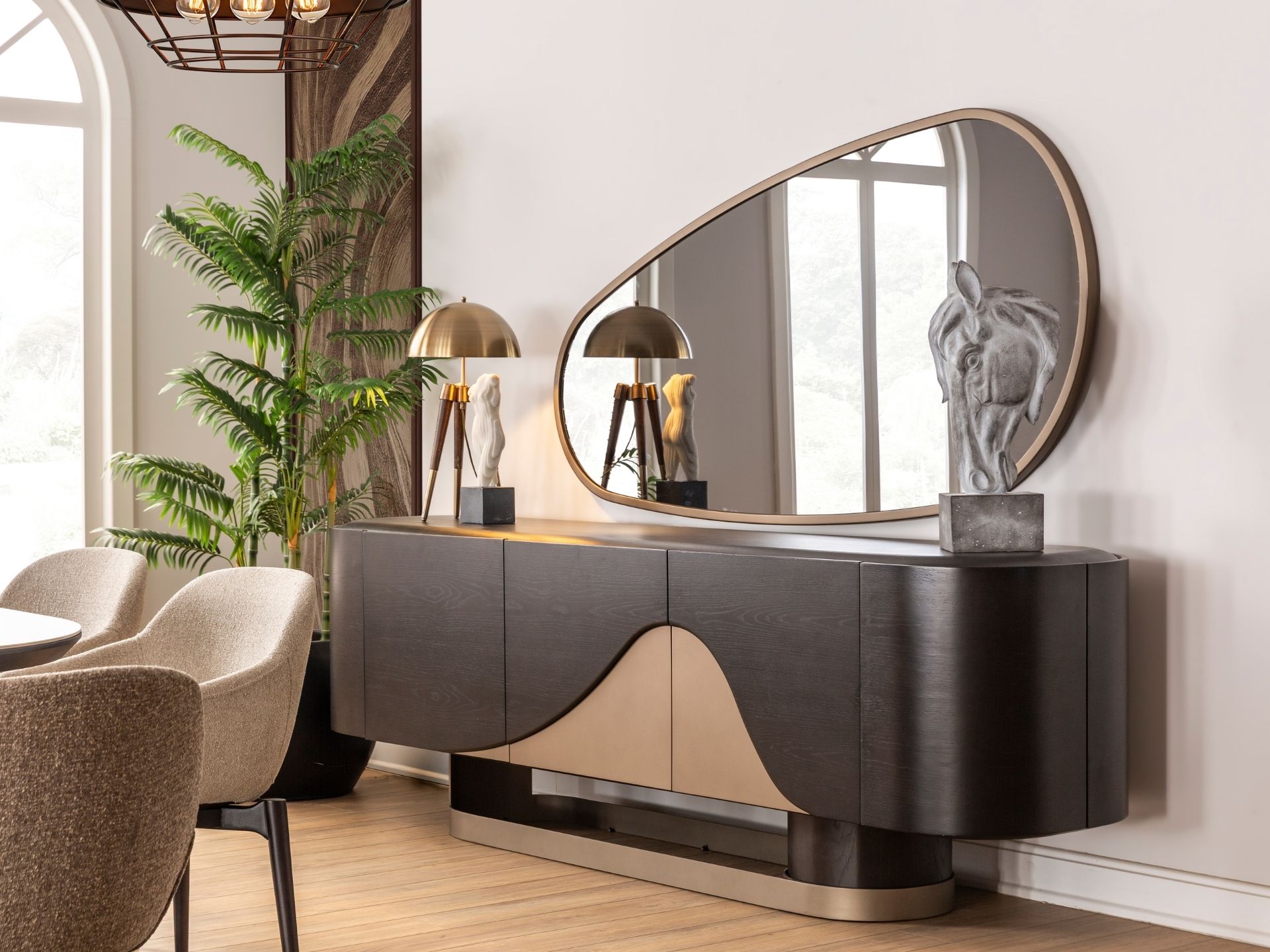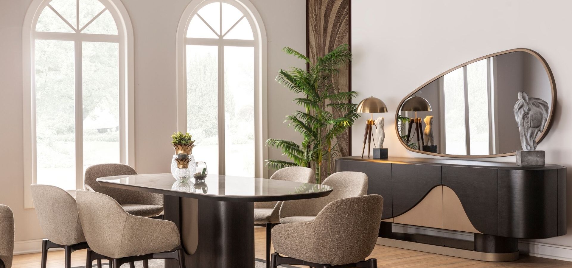 Luna Yemek Odası, adının ilham kaynağı olan gökyüzündeki o kusursuz döngüyü ve yumuşak ışığı yaşam alanınıza taşıyor. Keskin köşeler yerine kavisli formların hakim olduğu bu tasarım; masadaki dairesel geçişler ve konsol yüzeyindeki ışıltılı detaylarla salonunuzda büyüleyici bir atmosfer yaratıyor. Modern lüksü masalsı bir dinginlikle harmanlayan Luna; sadece bir yemek odası değil, mekana ruh katan estetik bir sanat eseri.