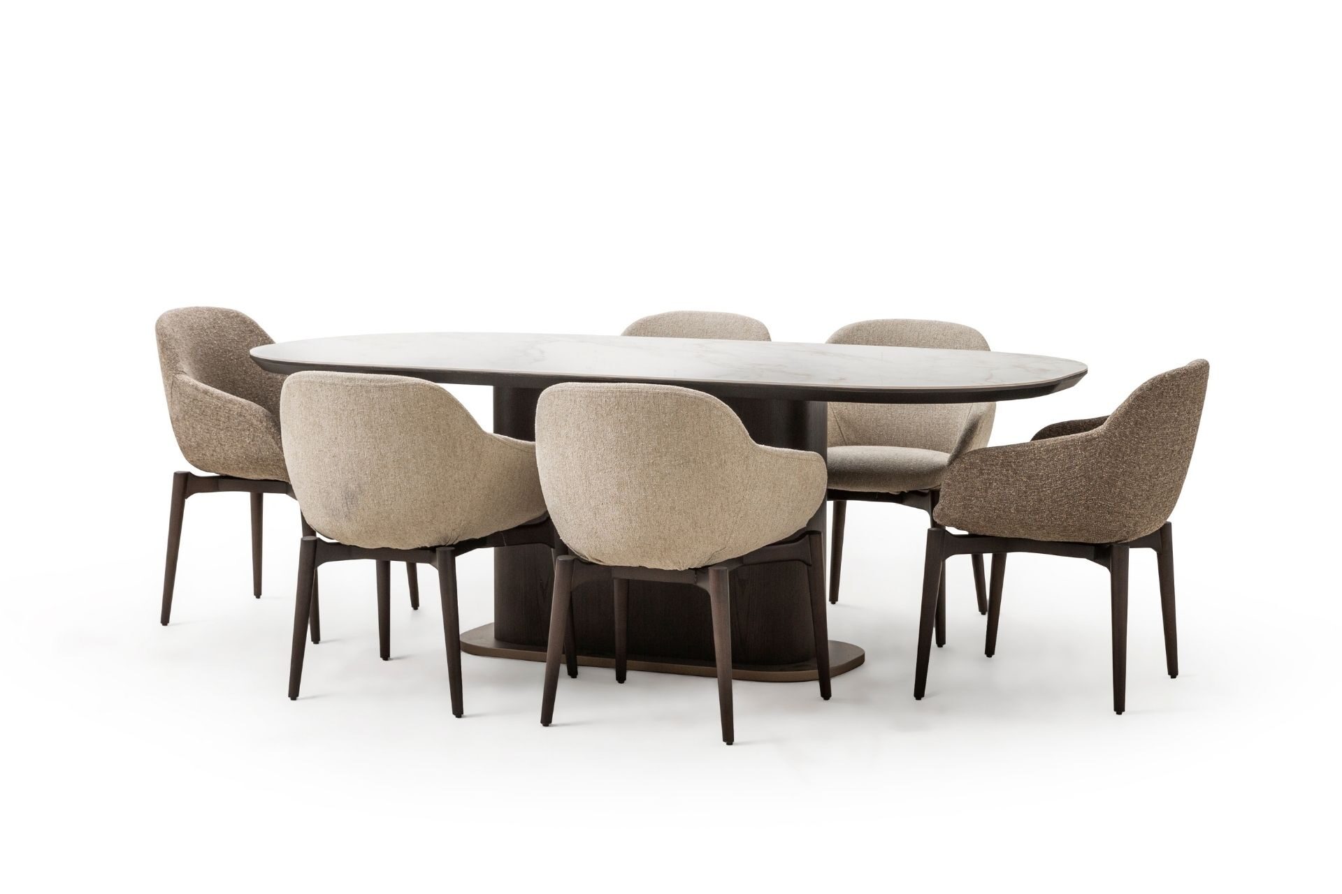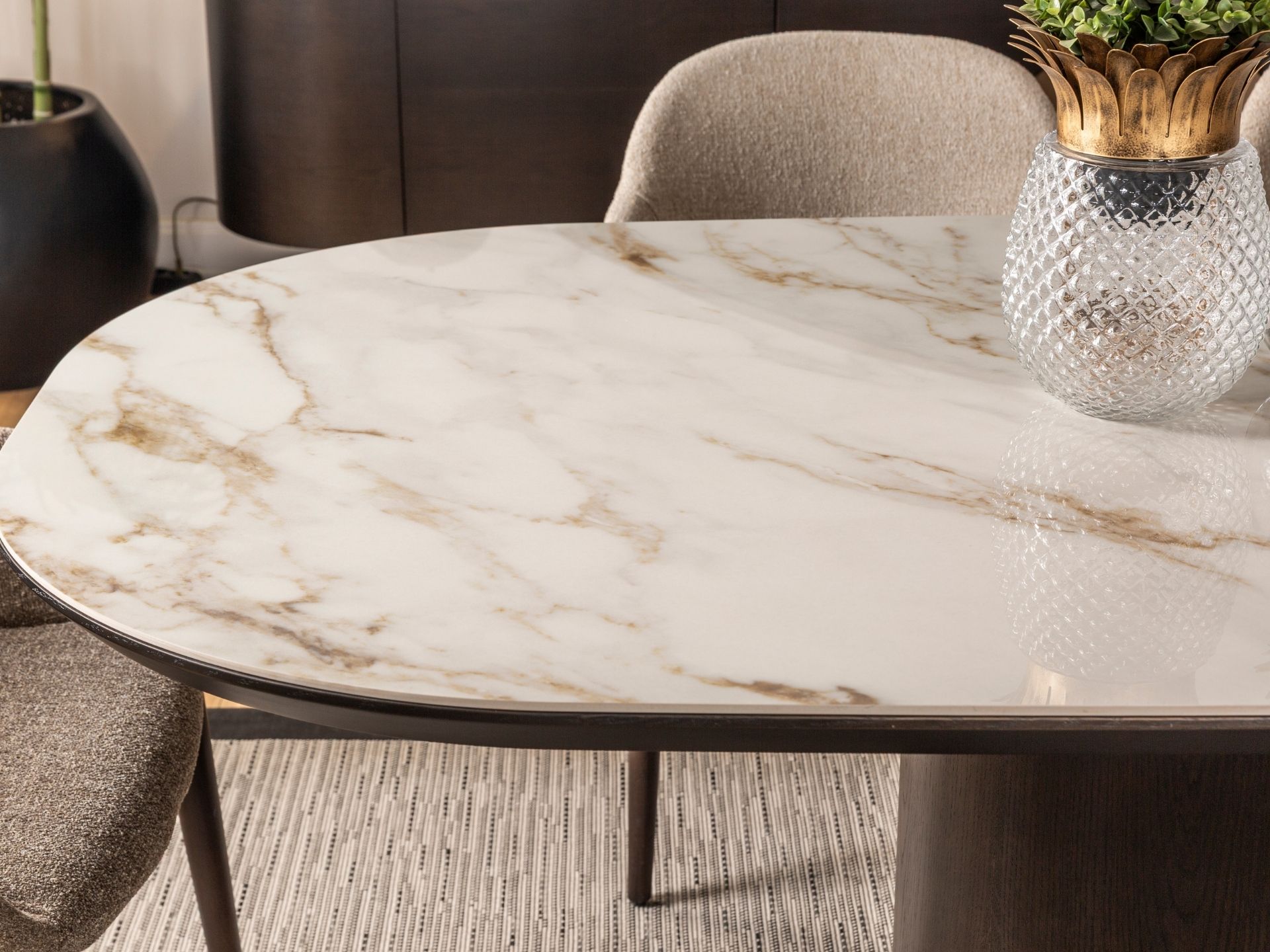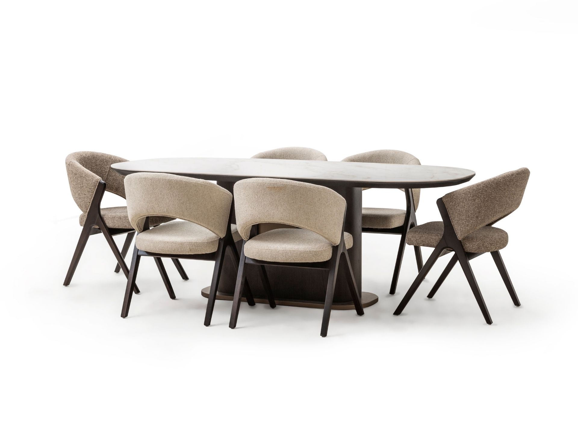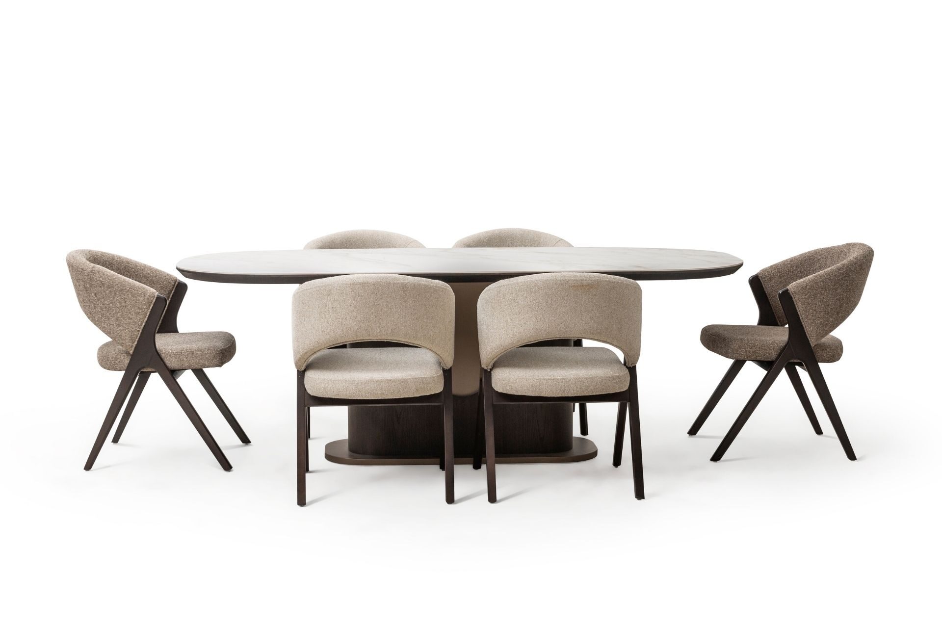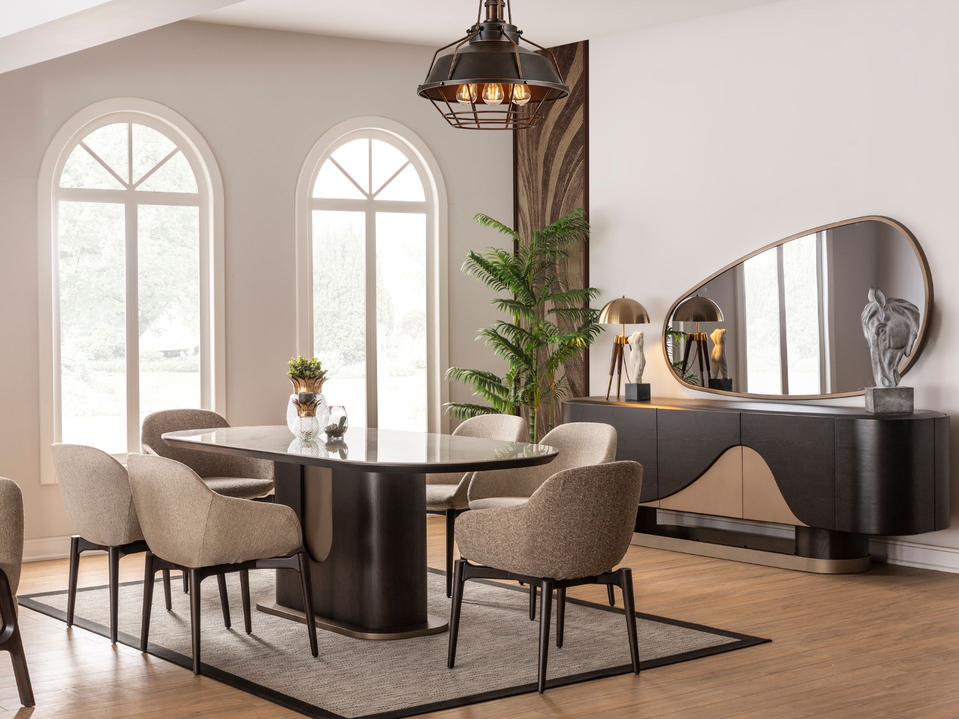 Estetik duruşun fonksiyonel bir dehayla buluştuğu nokta: Luna Yemek Odası. Geniş iç hacimli konsolu, sessiz yavaşlatıcı mekanizmalı kapakları ve ergonomik sandalye yapısıyla hayatınızı kolaylaştırırken şıklığından asla ödün vermiyor. Yüksek zanaatkarlık ürünü olan yüzey işçiliği ve zemine ferahlık katan zarif ayak yapısı, uzun ömürlü bir kullanım vaat ediyor. Luna ile en kalabalık davetleriniz bile kusursuz bir düzen ve asalet içinde geçiyor.