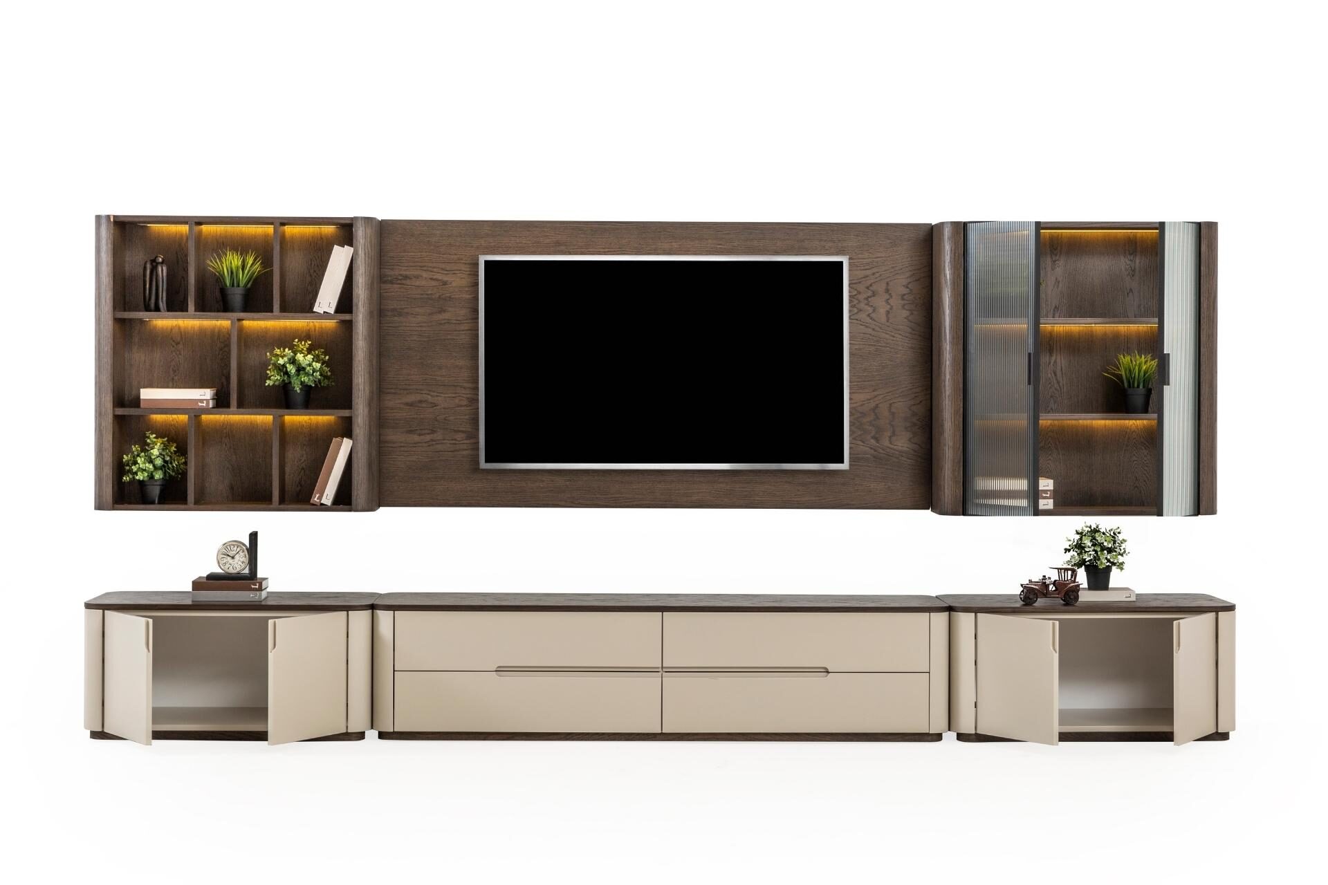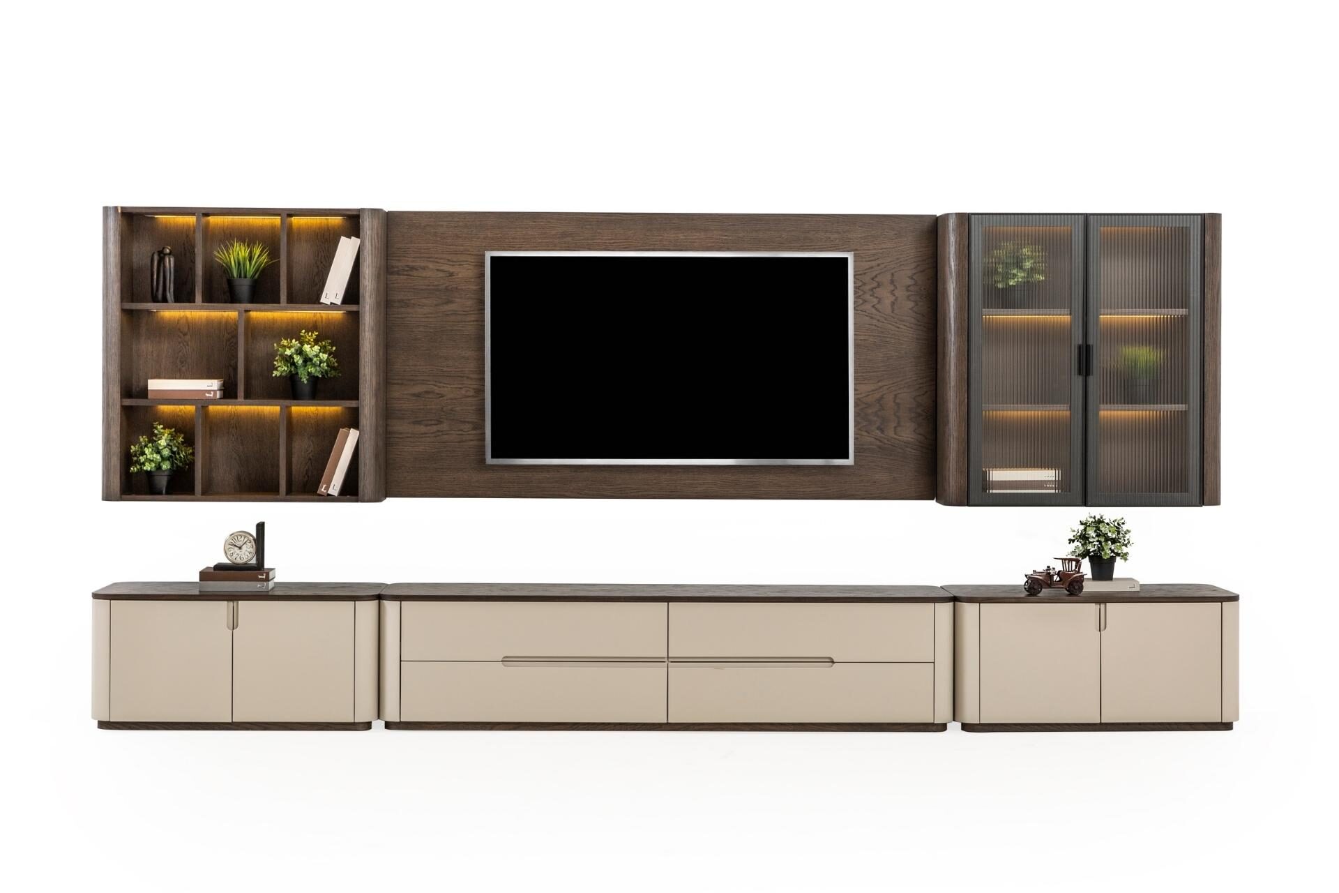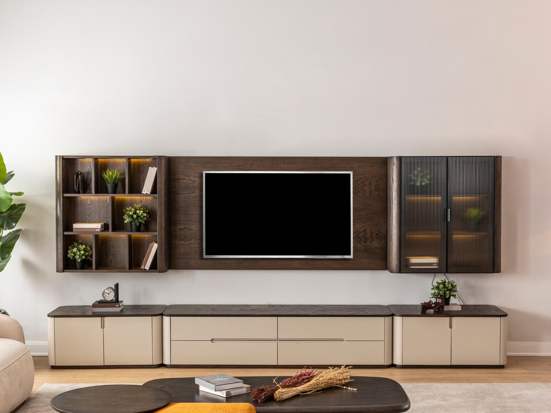 Teknoloji ve sanatın en görkemli buluşması. Astana TV Ünitesi, koleksiyonun karakteristik zengin yüzey işçiliğini ve heybetli duruşunu yaşam alanınızın odak noktasına taşıyor. Sadece bir TV sehpası değil, geniş saklama alanları ve estetik raflarıyla salonunuzun tüm düzenini sağlayan mimari bir parça. Modern lüksün en net ifadesi olan bu ünite, Astana serisinin o asil ruhunu her detayında hissettiriyor.
