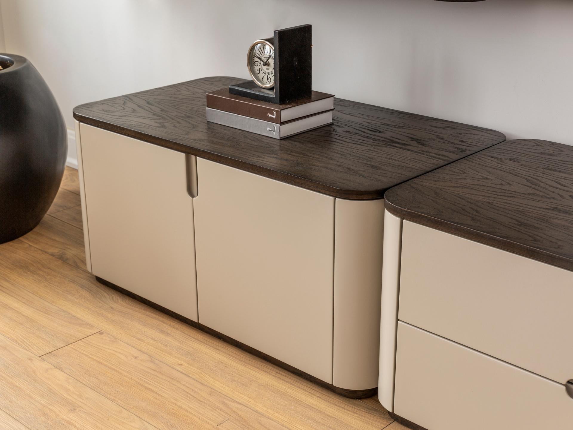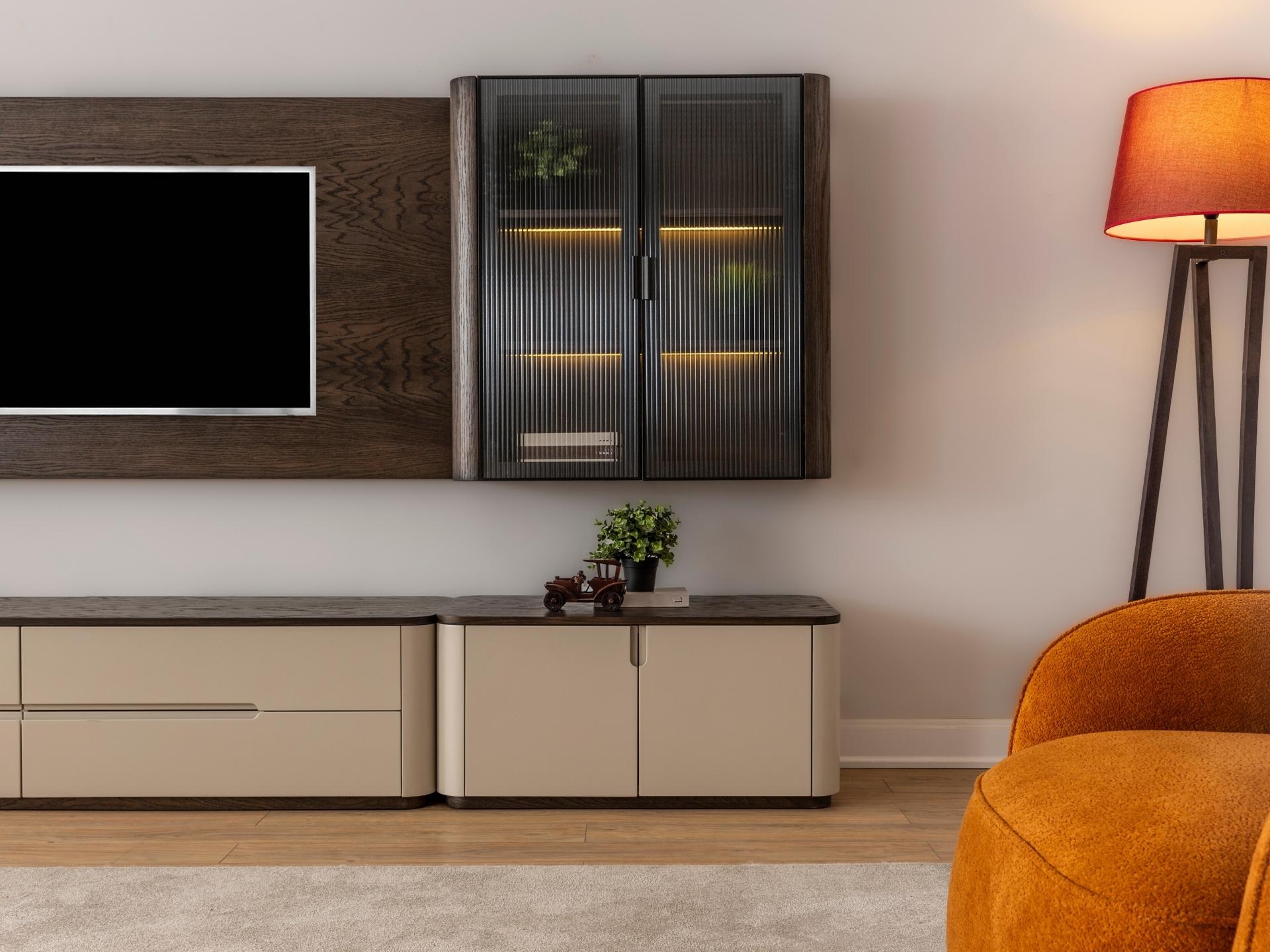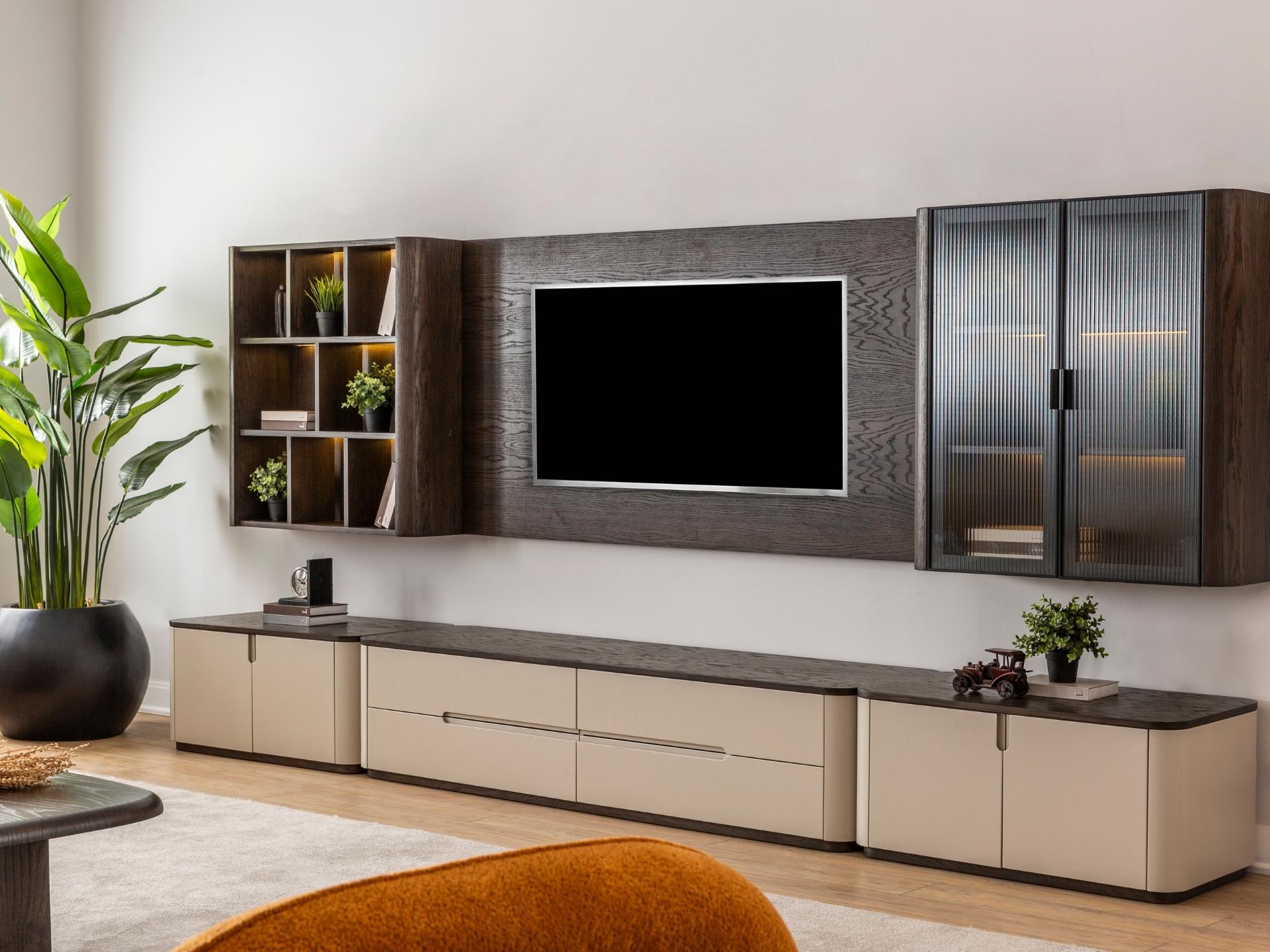 Görsel bir şölen, kusursuz bir düzen. Astana TV Ünitesi, modern hayatın ihtiyaçlarını koleksiyonun sarsılmaz estetik anlayışıyla birleştiriyor. İnce düşünülmüş bölmeleri ve seriye özel kulp detaylarıyla donatılan bu tasarım, karmaşadan uzak, rafine bir izleme keyfi sunar. Hem büyük ekranlar için güvenli bir zemin hem de dekoratif objeleriniz için prestijli bir sergileme alanı yaratan, evinize değer katan bir modül.