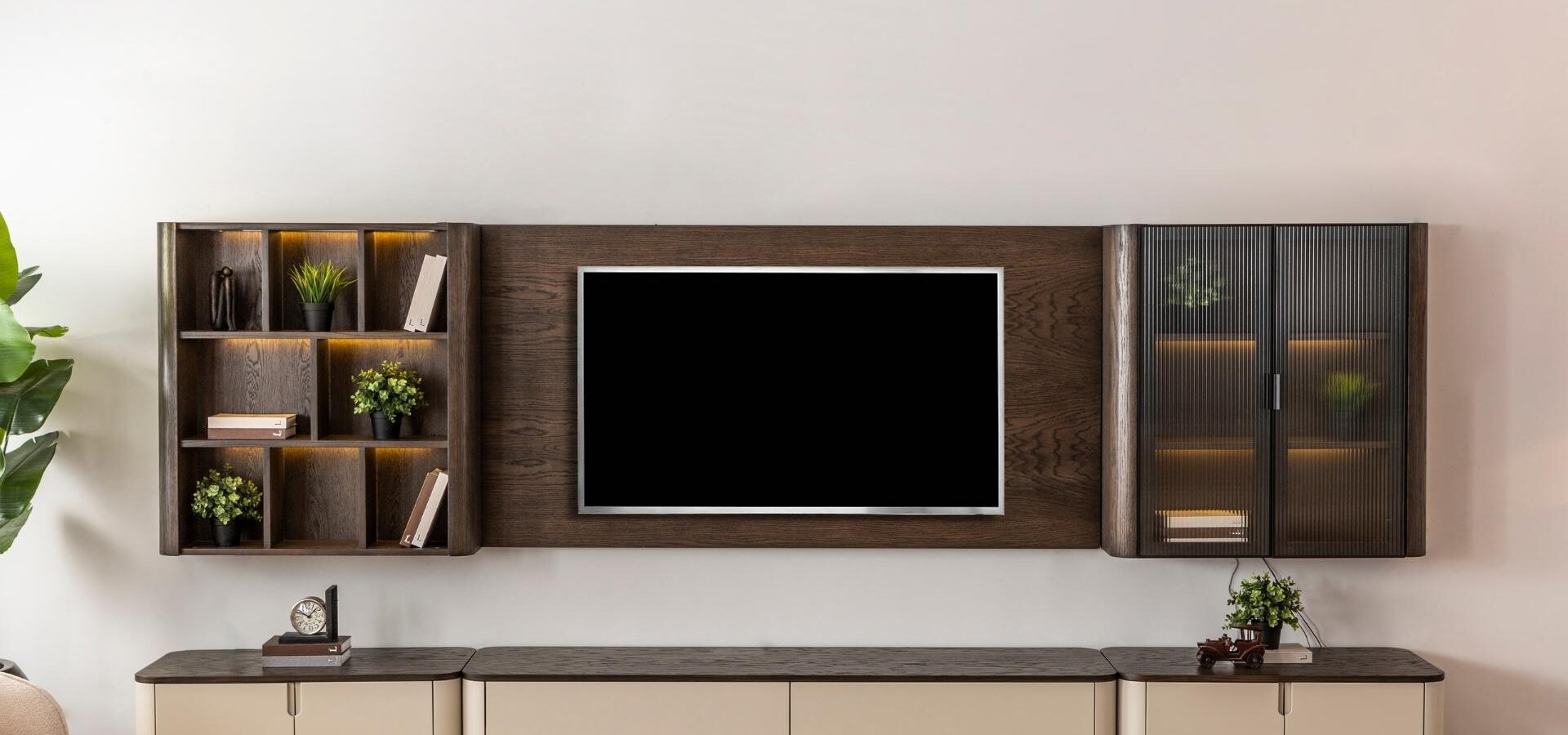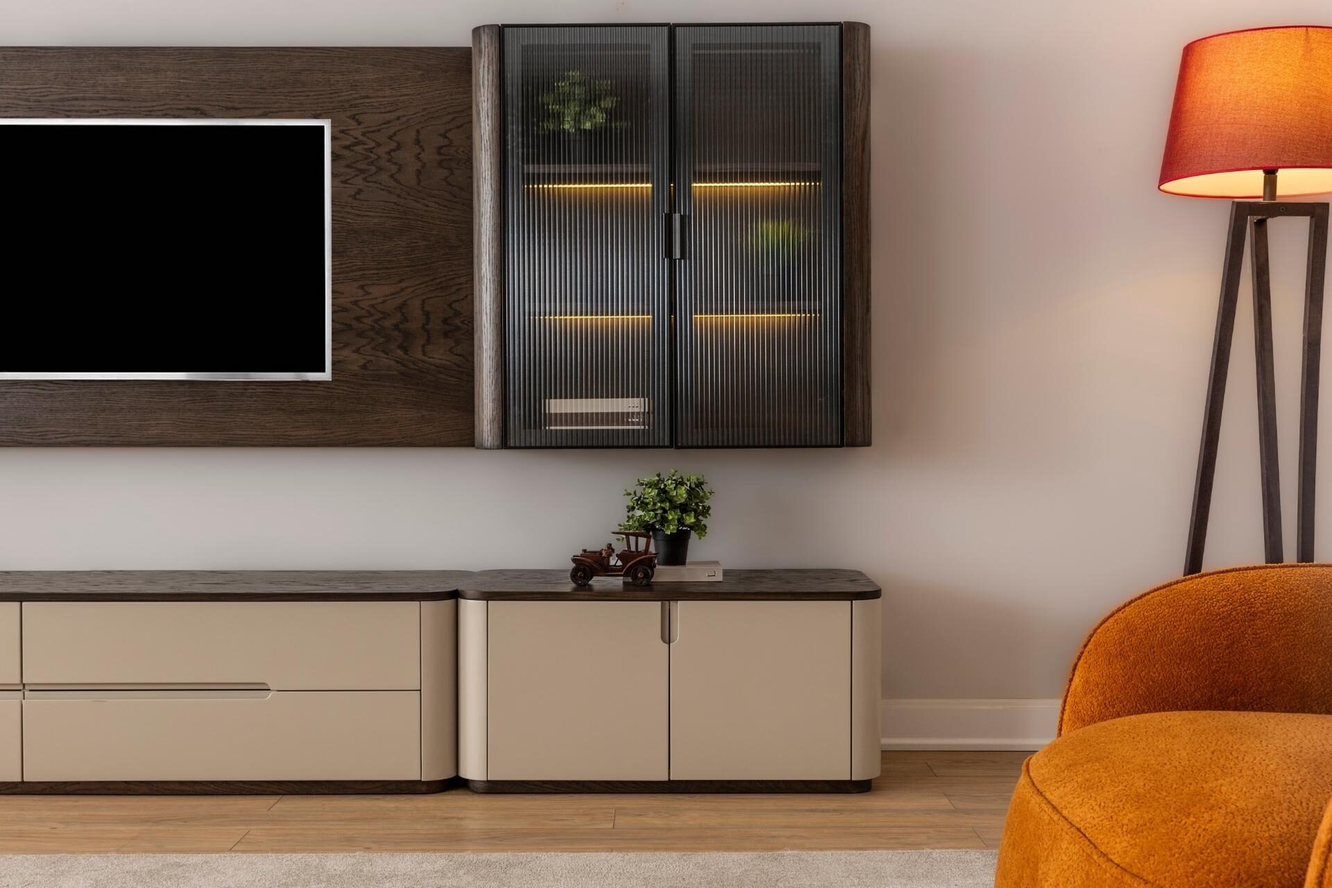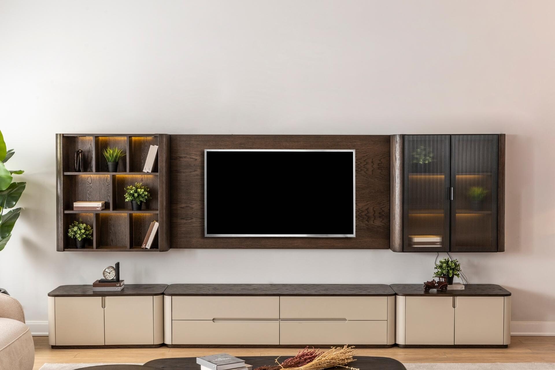 Görsel bir şölen, kusursuz bir düzen. Astana TV Ünitesi, modern hayatın ihtiyaçlarını koleksiyonun sarsılmaz estetik anlayışıyla birleştiriyor. İnce düşünülmüş bölmeleri ve seriye özel kulp detaylarıyla donatılan bu tasarım, karmaşadan uzak, rafine bir izleme keyfi sunar. Hem büyük ekranlar için güvenli bir zemin hem de dekoratif objeleriniz için prestijli bir sergileme alanı yaratan, evinize değer katan bir modül.
