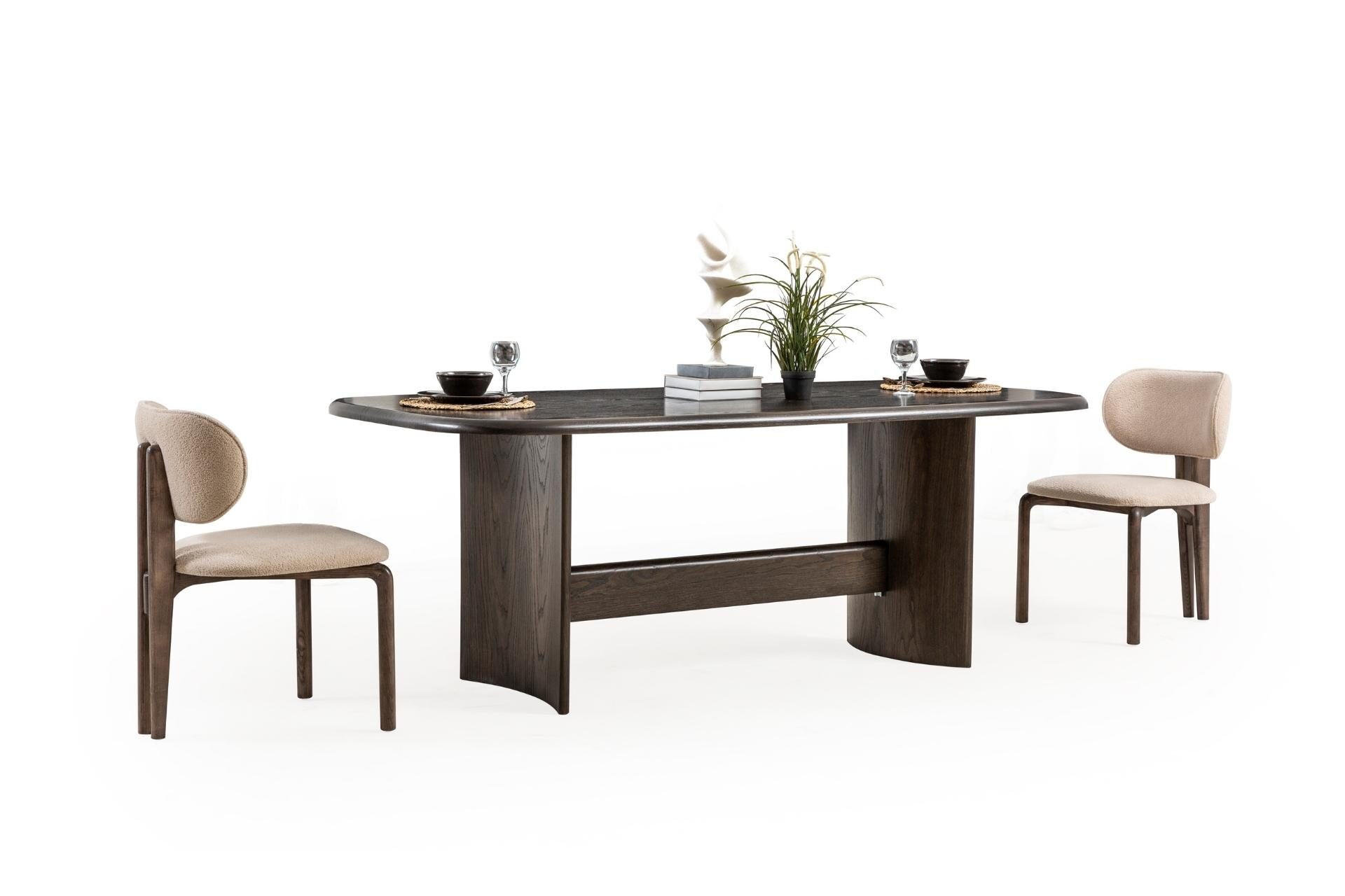 Zamanın ötesinde bir şıklık, sarsılmaz bir kalite. Astana Yemek Odası, modern mobilya sanatının en asil örneklerinden birini sunar. Karakteristik yüzey dokuları ve koleksiyona özel ayak tasarımlarıyla donatılan bu seri, fonksiyonelliği sanatsal bir formla birleştirir. Hem geniş aile buluşmalarında hem de en özel kutlamalarda, mekanın tüm enerjisini asaletle yöneten, evinize değer katan bir yatırım.